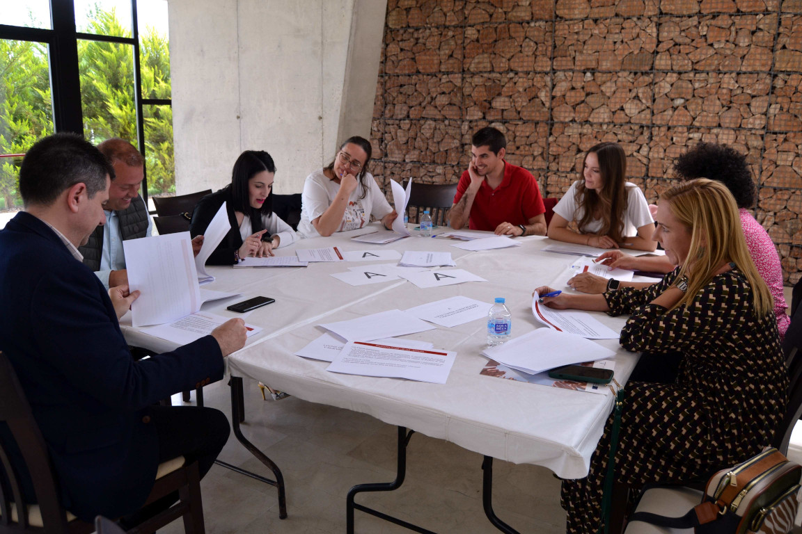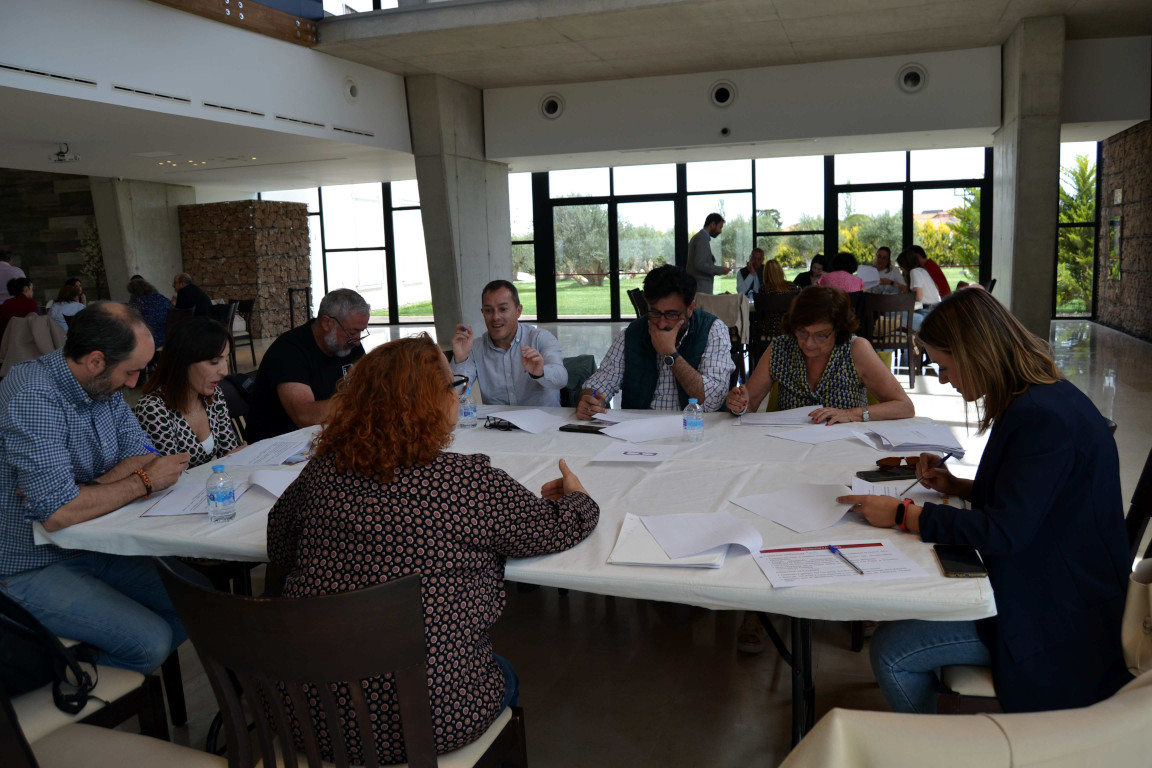 Después se formaron los grupos de trabajo para contrastar y enriquecer los ejes y proyectos prioritarios en torno a esos 5 ejes principales: Hacia un nuevo modelo de Gobernanza/Desarrollo de capacidades y apoyo a los agentes del territorio. Cómo abordamos la despoblación (lucha contra la despoblación y nueva actividad económica). Redefinición del Parque Cultural, su identidad, Cultura y Turismo Sostenible. La oportunidad de las transiciones, transición energética, climática y digital; y Agroalimentario y Circuitos cortos de comercialización. Grupos que coordinaron el equipo técnico integrado por Joseba Egia, Franco Llobera, Rafael Ayala, Esther Matas e Iván Gómez.