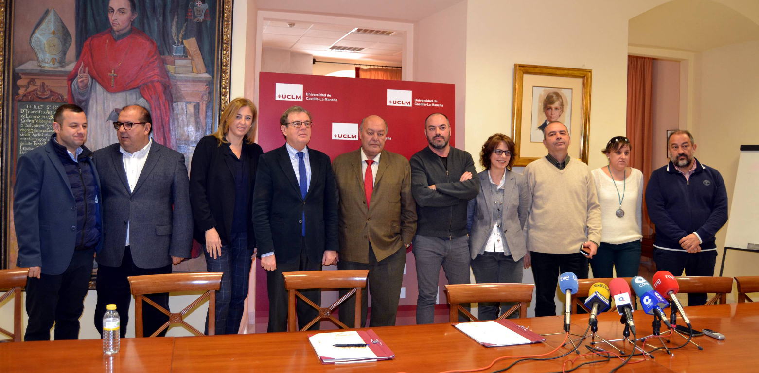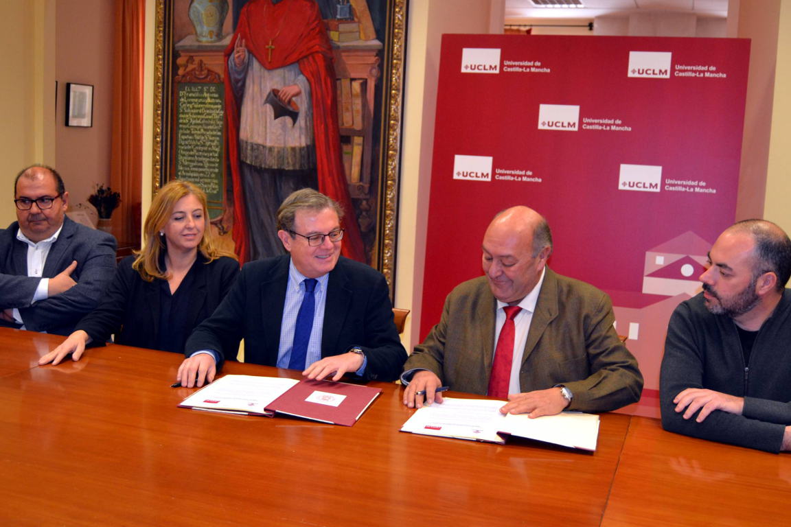 A la firma del convenio, que ha tenido lugar en el Rectorado, ha asistido también la vicerrectora de Transferencia e Innovación, Ángela González, y el vicerrector de Investigación, José Julián Garde, así como así como el investigador de la Escuela Superior de Ingenieros Agrónomos de Ciudad Real, Francisco Jesús García, que va a dirigir el estudio, y el director técnico de la Marca de Calidad Vino del Campo de Calatrava, César Cólliga.
