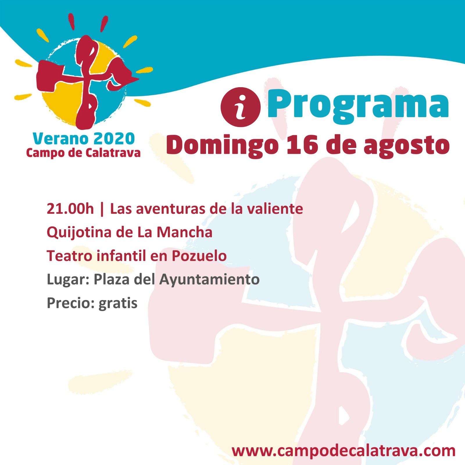 Y el domingo 16 de agosto, La Cantera actuará en la Plaza del Ayuntamiento de Pozuelo a las 21 horas con su obra de teatro infantil “Las Aventuras de la valiente Quijotina de la Mancha”.