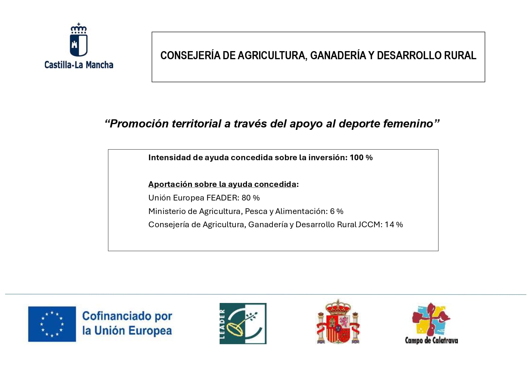 La acción consiste en el patrocinio de los clubes y la deportista referidos abajo mediante la firma de un contrato de patrocinio en virtud del cual se ejecutará el pago del importe convenido a cambio de una serie de contraprestaciones en la difusión de la imagen de marca estipulada por la Asociación para el desarrollo del Campo de Calatrava.